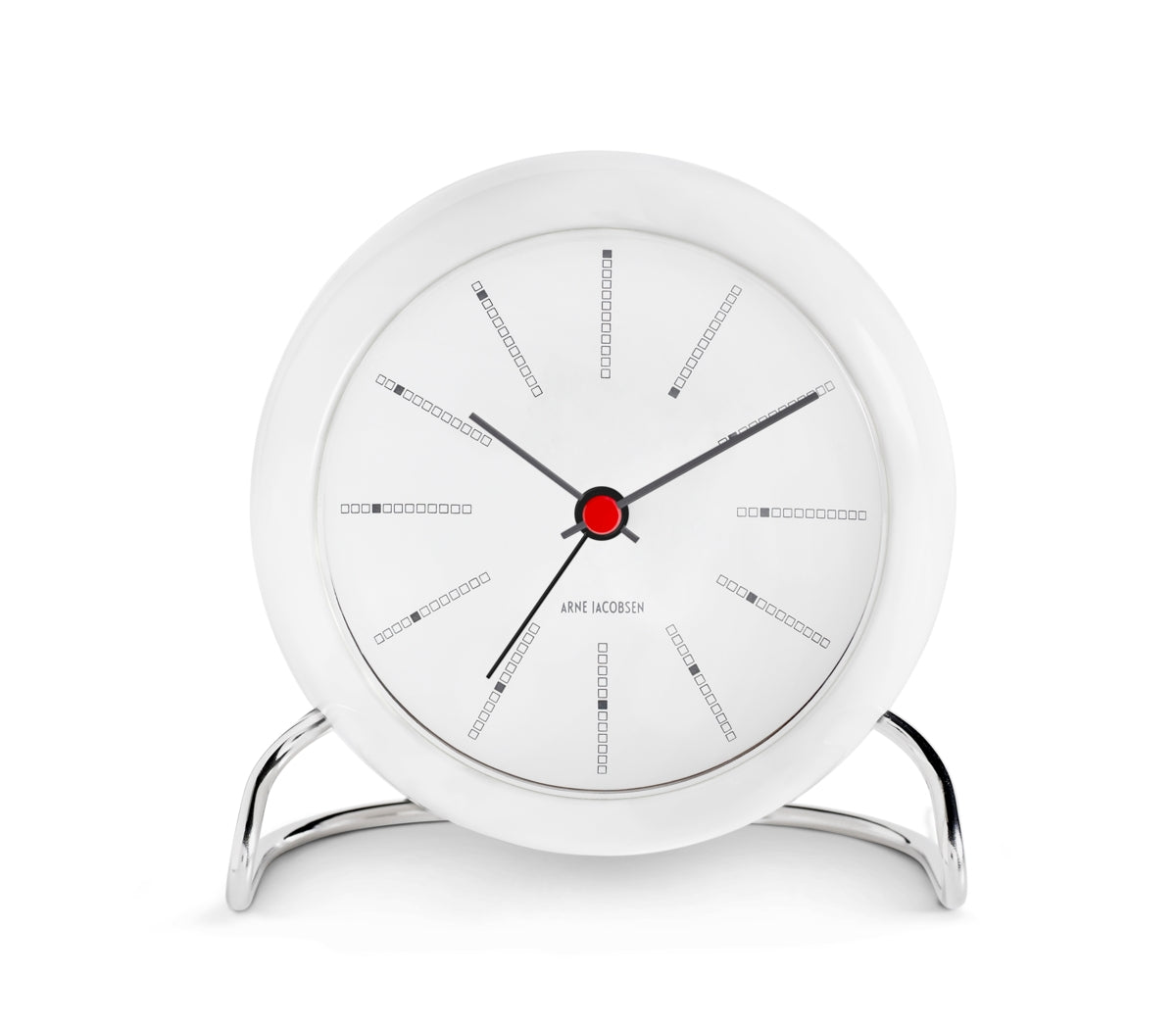 All the original clocks for both wall and table in the different Arne Jacobsen Clocks series have been recreated in accordance with the master architect’s original drawings – all with updated functions, such as snooze mode and light sensor. What all the clock series have in common is their timeless, classic design, which is simple yet distinctive and historic. And with their floating look on the wall or from their fixed place on the table or shelf, the clocks hang and stand almost like sculptures in the home. They represent beautifully the very best aspects of Danish design.