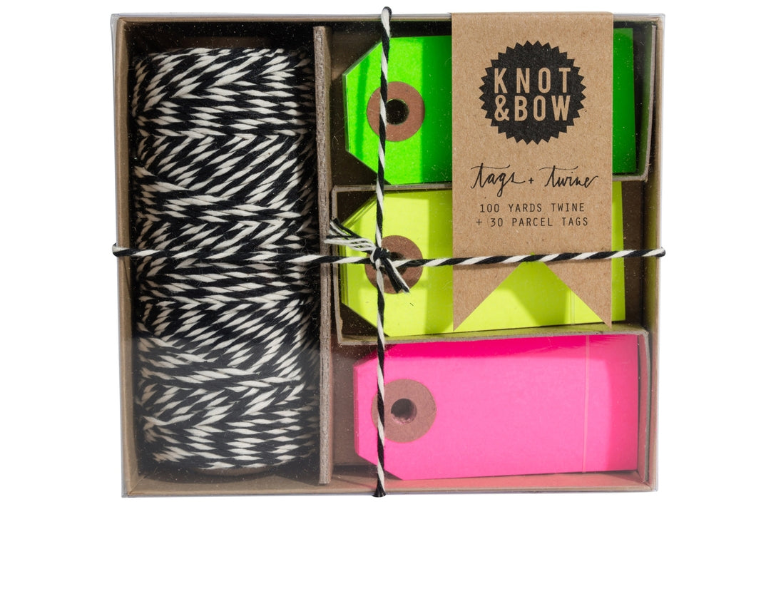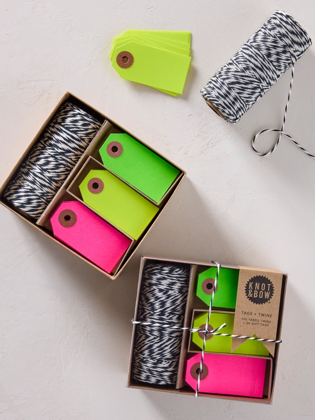 Top off presents and packages with a custom Black and Neon Tag and Twine Box.