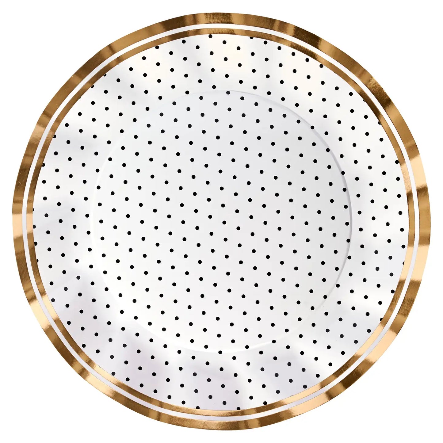 These ruffled edge black and white beauties have a metallic gold rim and will make you want to host a party at the first chance you get, and add a touch of elegance to any event. Impress your guests, they will not believe that these are paper plates!