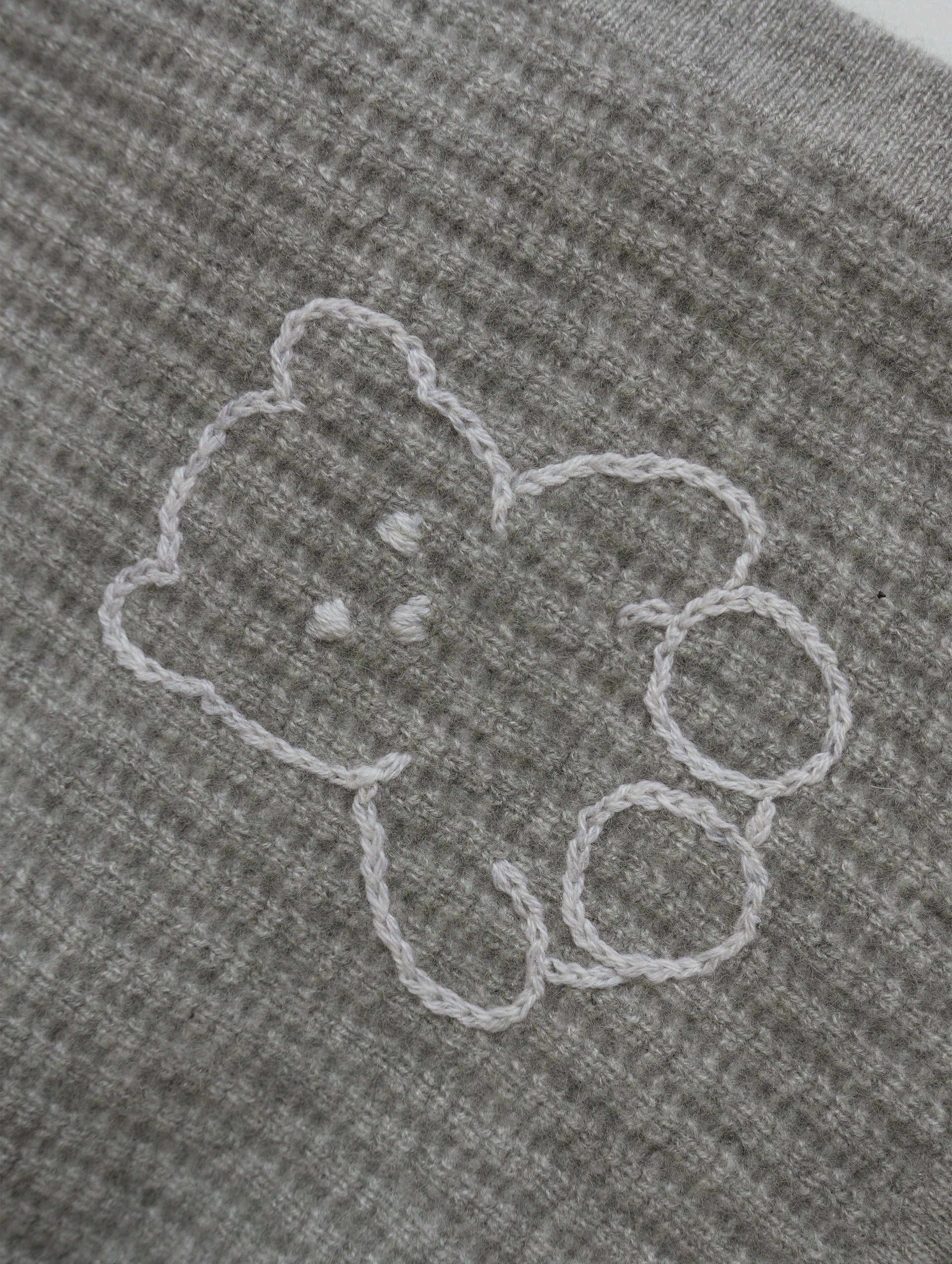 Discover the gift of luxury for your little ones with this Cashmere Bear Embroidery Baby Blanket, crafted of 100% cashmere. Featuring a ribbed texture, this cozy knit boasts a chain-stitched bear at the corner for a subtle detail you’ll love.