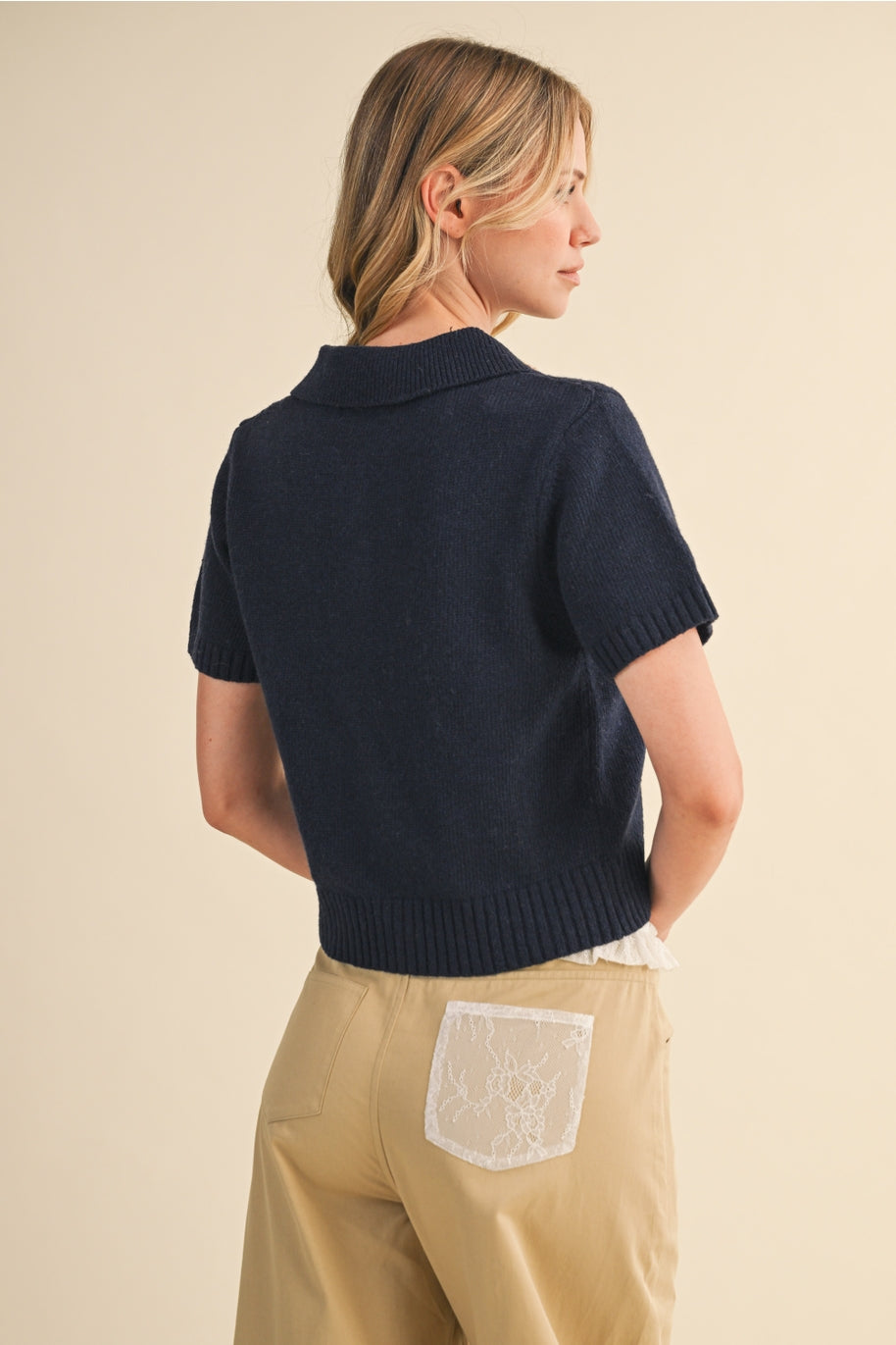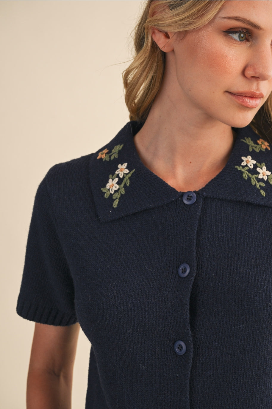 Elevate your wardrobe with the Floral Collar Knitted Top, featuring delicate floral embroidery on a charming collar. This short-sleeve knitted top combines soft comfort with feminine detail, making it perfect for both casual outings and stylish layering. Its breathable fabric ensures all-day ease, while the unique embroidered collar adds a subtle touch of elegance to your look.