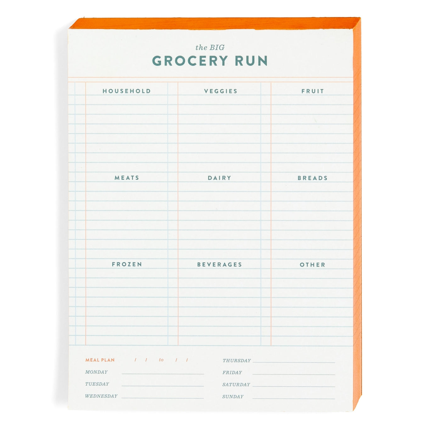 Keep your cart (and your week) under control with the Grocery Run Weekly Notepad. This 6x8” list-maker features 75 lined sheets with neatly organized sections for every grocery category—from produce and dairy to frozen foods and household staples. There’s even a meal plan section at the bottom to map out your week while you shop. With colored gilt edging and a clean, easy-to-use layout, this notepad makes prepping for your big grocery run a breeze.