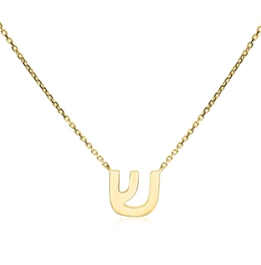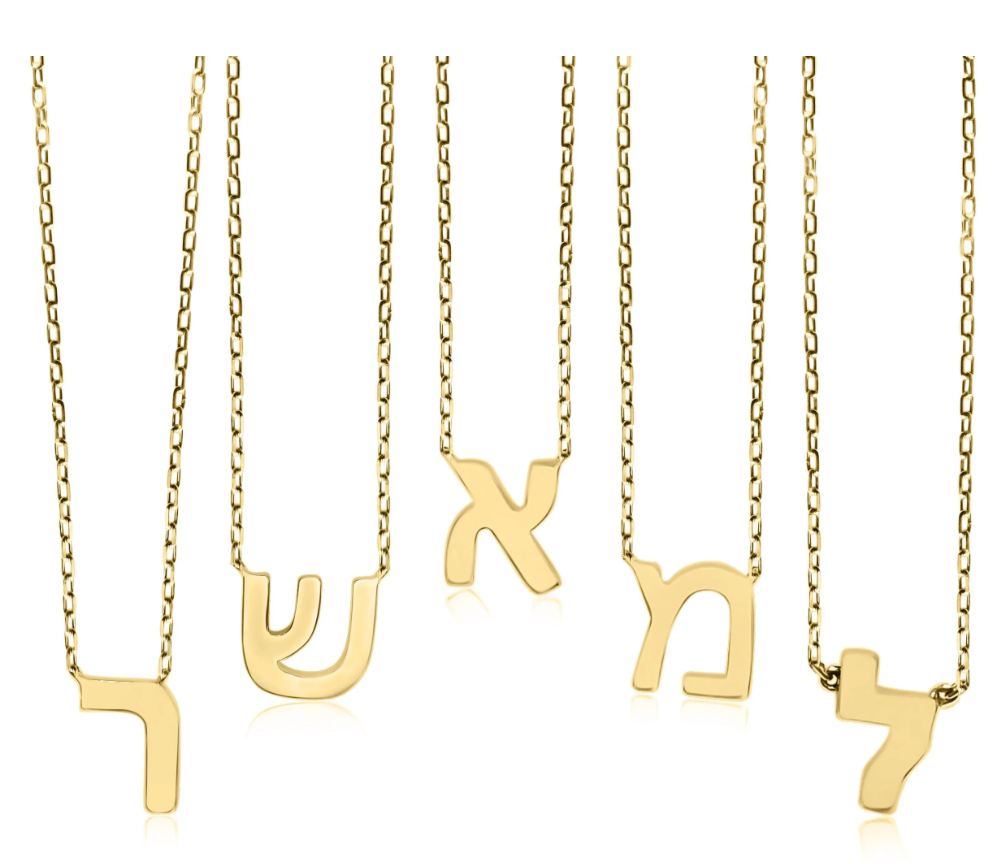 The Hebrew initial necklace is handmade in either 14k gold or sterling silver.