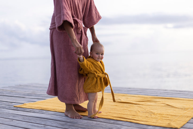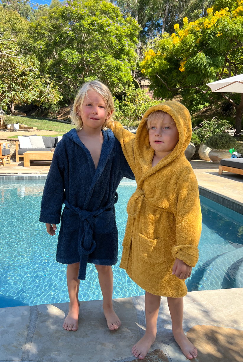 Simone Fan's Kids Robe is a classic robe shrunk down to adorable children's sizes. Open front robe in plush terry. Front side pockets and removable sash tie closure included.