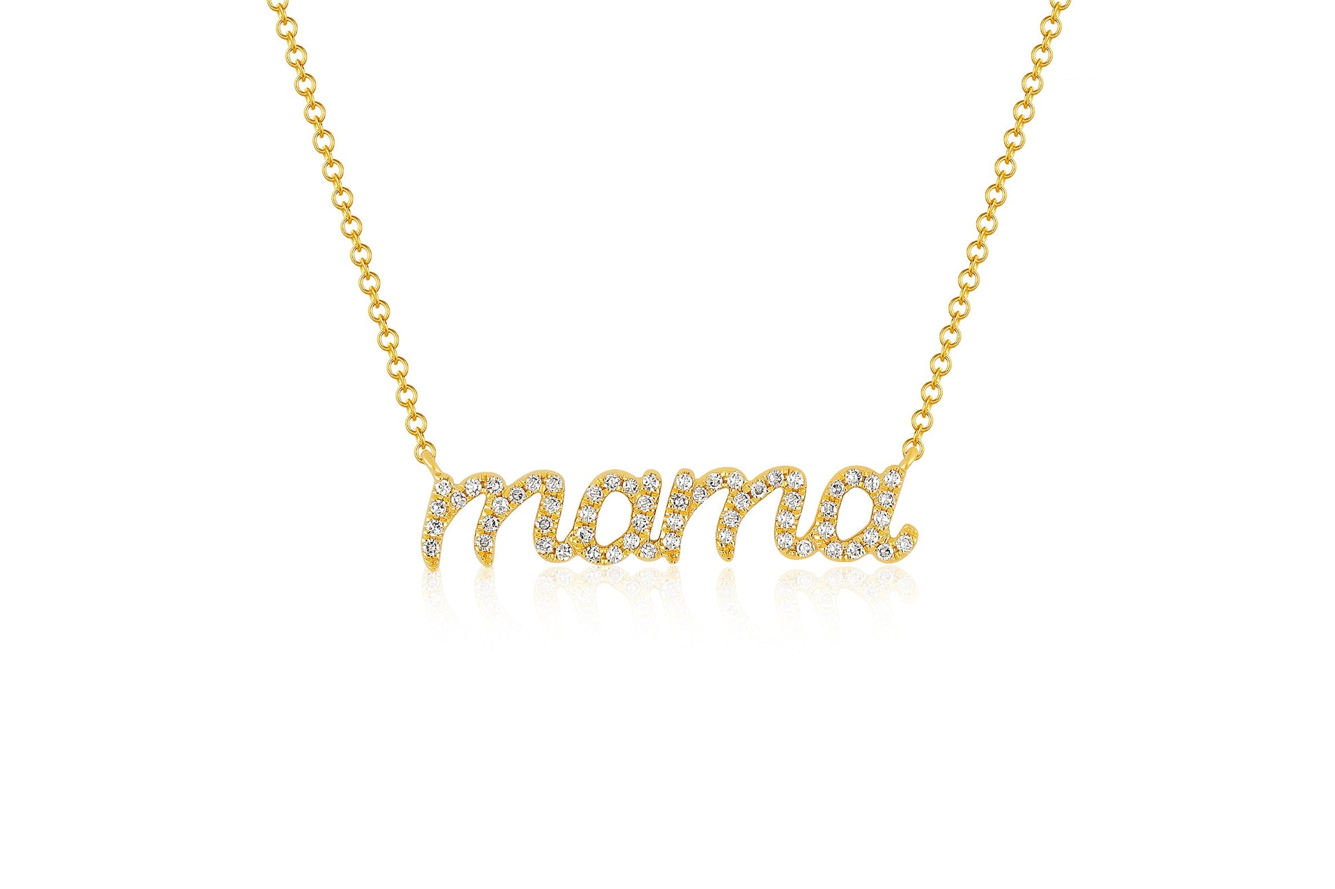 The Mama Cursive Necklace makes for the perfect gift for all moms and mom-like figures. Featuring .15 carats of diamond set in script letters spelling out "mama," this necklace is a sweet, sparkly addition to her layer.