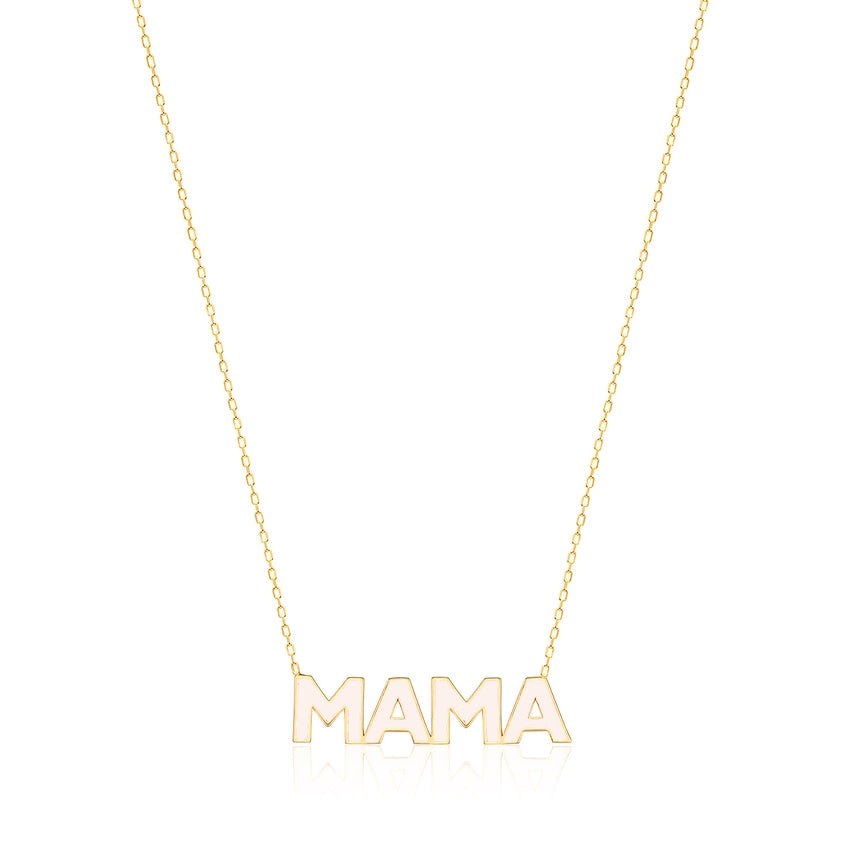 This Mama Necklace is a stunning piece of jewelry that will make any mother feel loved and appreciated. The white French enamel and gold vermeil chain add a touch of elegance, while the 3.5" connection chain allows for a perfect fit. Show off your love for your little ones with this beautiful necklace.