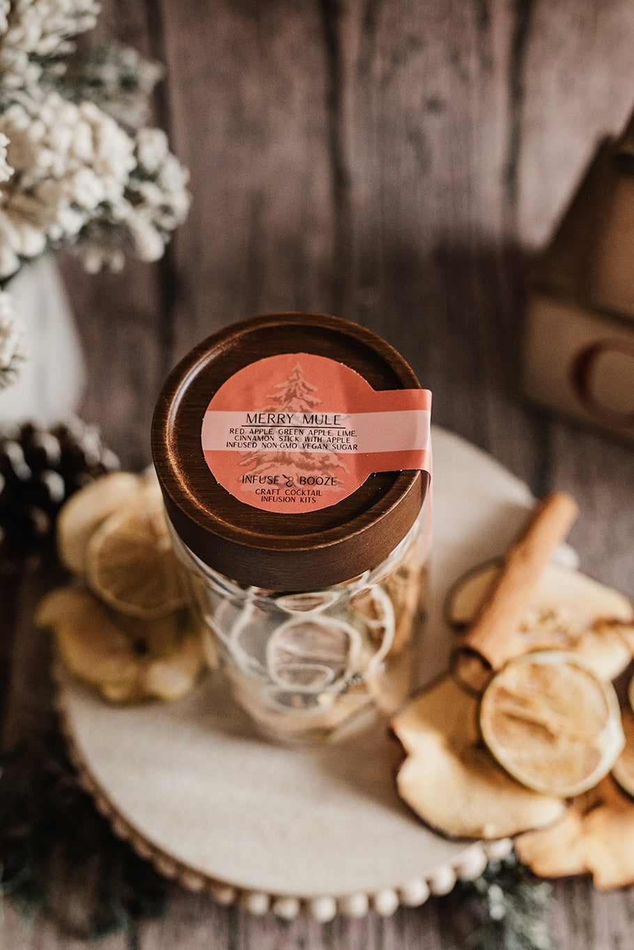 Pair this infusion with your favorite top-shelf Vodka, Gin, Tequila or Whiskey. When it's time to make your cocktail, add 1 shot of your infusion to 2-3 oz. of Ginger Beer. Hot Water for a zero-proof recipe and add to your hot apple cider.