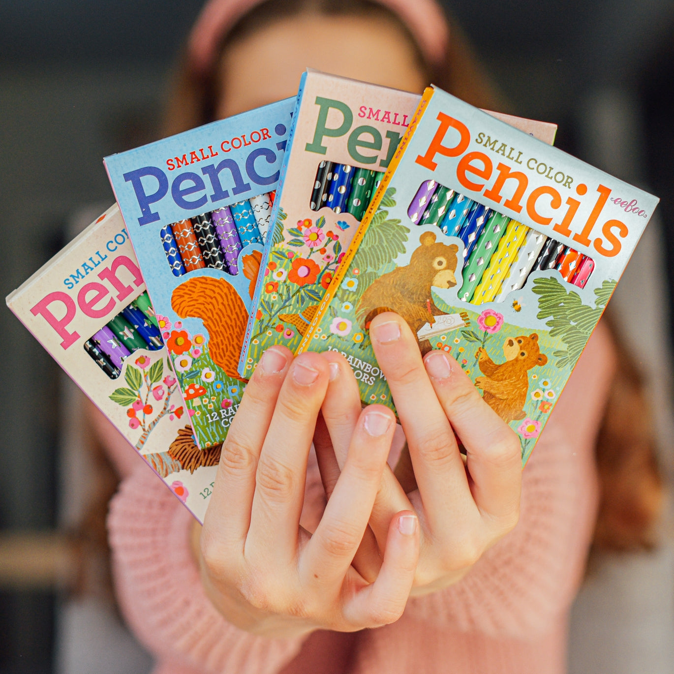 The Small Color Pencils are an endearing assortment of 12 rainbow pencils. Varied designs feature a Mama Bird, a Gardening Bunny, a Sketching Squirrel and a Pair of Bears, all sweetly illustrated by Victoria Ball. Pairs perfectly with Victoria’s Garden Small Sketchbook Assortment.