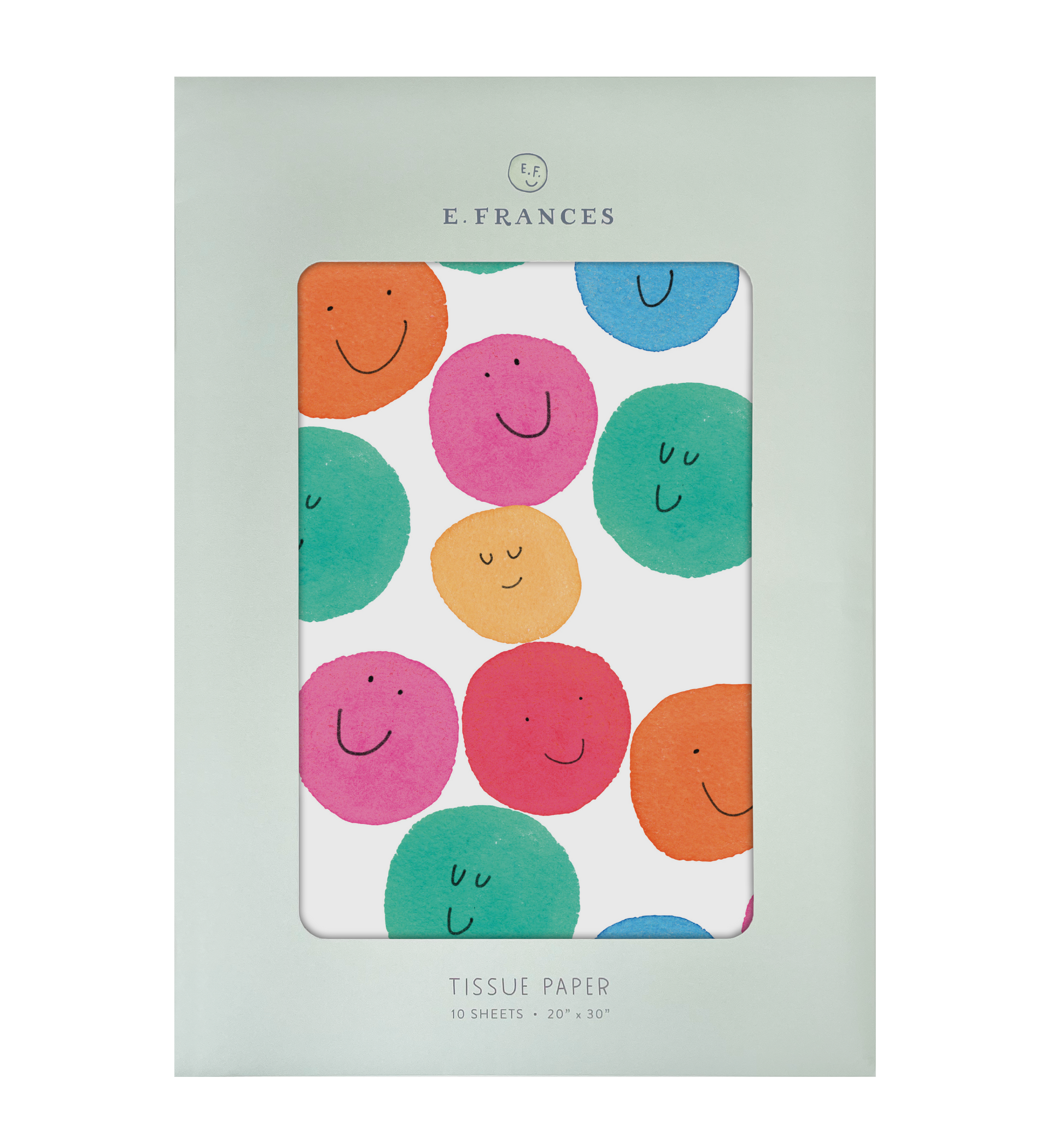 10 sheets of Smiley Tissue Paper per package. Made from 100% recycled paper, it's 100% recyclable. Mix and match with the coordinating Smiley Face Gift Bag (sold separately.) Yay for plastic packaging!